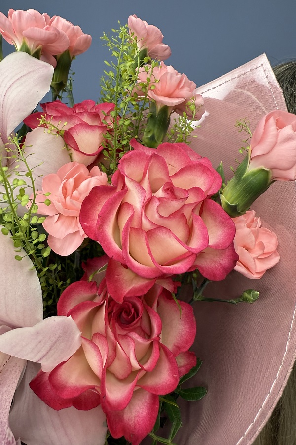 - Аккуратно снимите упаковку с букета;