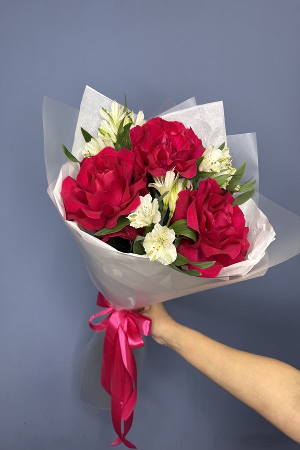 В стоимость букета включена дизайнерская упаковка с атласной лентой. По желанию, добавим небольшую записку с интригующей фразой, гарантируя анонимность.