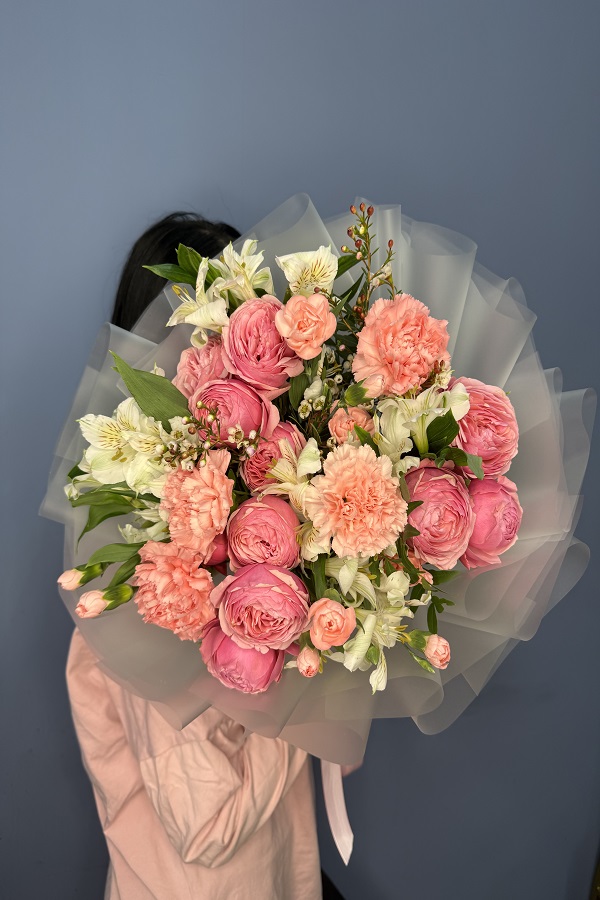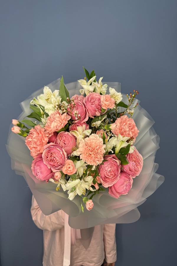 - Аккуратно снимите упаковку с букета;