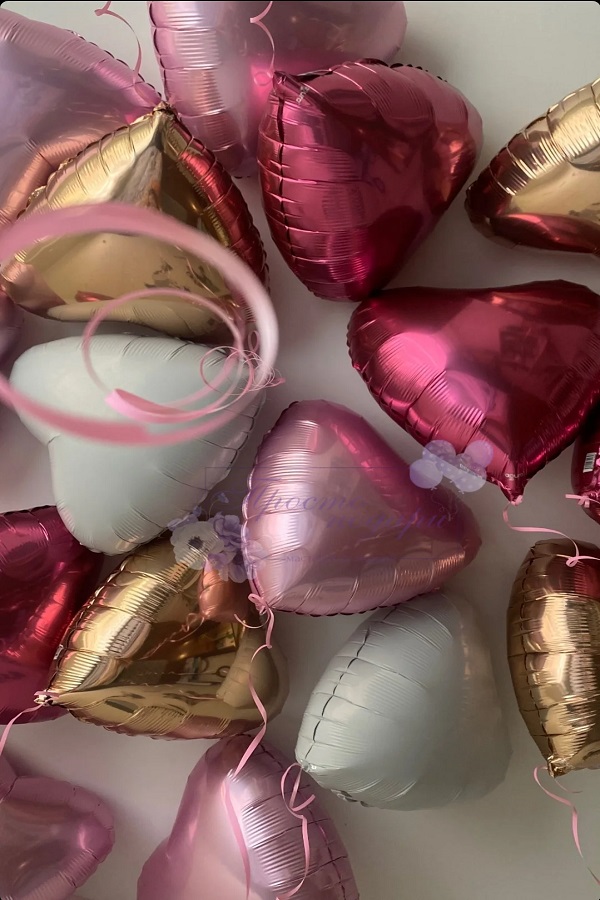 - Фольгированные шары сердца под потолок