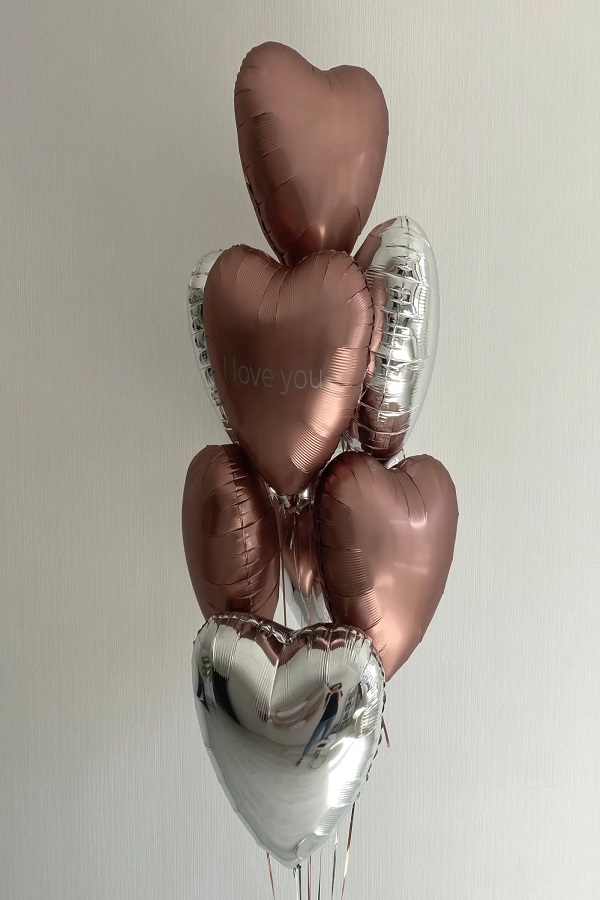 - Фонтан из фольгированных шаров сердца